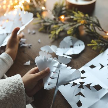 Provide square pieces of paper and fold then cut to create various shapes.